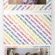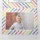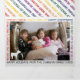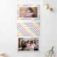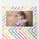 Fila mínima de deseos de Navidades en colores arcoiris tarjeta triple de fotos de vacaciones. Un diseño moderno que muestra una línea de los siguientes deseos de los Navidades en torno a la foto: "NAVIDADES FELICES Y LUMINOSOS", "ALEGRÍA AL MUNDO", "FELIZ DE TODO", "PAZ, AMOR, ALEGRÍA", "FELIZ DE VACACIONES" y está acentuado con un adorable blanco r. Los otros paneles presentan un patrón de los mismos deseos coloridos y fotos de tu familia mientras que el panel central interior tiene tu texto en un marco. Colores: verde, naranja púrpura, rojo, amarillo. Fotografía © Storytree Studios, Stanford, CA
