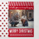 ¡Presentamos nuestra tarjeta de Navidad de cuadros escoceses! Esta alegre tarjeta muestra un vibrante fondo de cuadros rojos y verdes adornado con encantadores detalles de árboles de Navidad. Muestra elegantemente el saludo "Feliz Navidad" en una fuente elegante y incluye un espacio para tu foto querida.