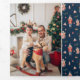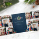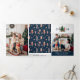 Tarjeta de vacaciones triple foto azul. Esta linda y única tarjeta de plegado de letras de fotos de Feliz Navidad o Felices Fiestas incluye hermosos soldados de juguetes caseros pintados a mano alrededor de un árbol de Navidad decorado con texto y fotos para personalizar. Buscar elementos coincidentes en la colección Navidades Holiday Nutcracker.