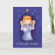 Tarjeta de felicitación de ángel lindo de temporada. Dice "Una noche silenciosa, una estrella arriba, un regalo de esperanza y amor. Feliz Navidad" Diseñado especialmente por Sarah Trett.