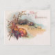 Una postal vintage de Acción de Gracias con una hermosa escena campestre bordeada de imágenes de calabazas, uvas, manzanas y hojas. Deseos vintage de un precioso recordatorio del pasado de Acción de Gracias. Esto es imprescindible para las vacaciones.