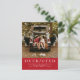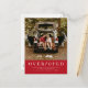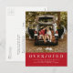 Envía alegría por vacaciones y anuncia tu gran noticia de compromiso con esta tarjeta vertical de una foto que muestra un mensaje de personalizable en la parte de atrás. "Sobregocijado" - con un énfasis en la alegría - y todos tus ahorros los detalles de la fecha están en blanco sobre un fondo rojo de Navidades festivos, pero el color puede ser editado haciendo clic en "Personalizar".