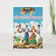 Otra tarjeta de Pascua griega nostálgica con el saludo de Paschal en inglés. Baile, cordero asado e incluso campanas y querubines. ¡Opa!