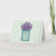 Esta tarjeta Violets Large Font Easter Card incluye el tarro de maleta azul dibujado por el ratón sobre violetas. El gran versículo interior del tipo de letra facilita la lectura.