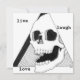 Entretenga a los cínicos y sátiros en su vida con esta tarjeta de felicitación con tema de calavera "Vive, ríe, ama". También podría exhibirla en broma como una impresión. Estamos conscientes de que no todos nuestros gustos o diseños cumplen con los criterios básicos/mainstream, y estamos emocionados de tener nuestro nicho en entretener a la población marginal. Mi esposo diseñó esta calavera usando bolígrafo y tinta y rellenó las sombras con acuarela. También usó sombreado cruzado intrincado para crear los elementos de sombreado. Yo agregué el texto como una broma y disfrutamos del resultado final.
