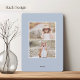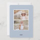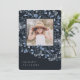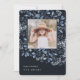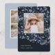 La elegante tarjeta de fotos Hanukkah presenta una foto favorita rodeada por un borde geométrico de follaje botánico azul pálido y pequeñas flores acuarelas en un rico fondo marino. Su personalizado Hanukkah saludo y apellido o nombres aparecen en la parte inferior con letras blancas de moda. Personalice la parte posterior con dos fotos adicionales y un mensaje personal.