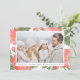 Envíe saludos de vacaciones a amigos y familiares en estilo moda con nuestras elegantes tarjetas de fotos. Tu foto horizontal o orientada al paisaje está enmarcada en blanco y rodeada de flores de peonía roja pintadas a mano y follaje verde. Personalice el saludo de su personalizado (mostrado con "Amor y Alegría") y el(los) apellido(s) debajo de su foto.