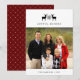 Envíe sus deseos de vacaciones en un estilo rústico moderno con nuestras tarjetas de fotos de los venados de Woodland. El diseño es elegante y sencillo, en blanco y negro, y cuenta con un par de ilustraciones de silueta de ciervo negro unidos por un solo copo de nieve, con un saludo personalizado, nombres y un año con letras negras. Mostrado con "Joyful Wishes". Las tarjetas cambian a un sutil patrón de diamantes de puntos rojos y blancos de vacaciones.