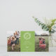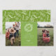 Monograma rústico de corona blanca de invierno, tarjeta fotográfica de vacaciones 2 en verde festivo. Características de la tarjeta que coinciden con el respaldo del patrón y varias líneas de plantilla para su saludo personalizado.