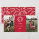 Monograma rústico de corona blanca de invierno, tarjeta fotográfica de vacaciones 2 en rojo festivo. Características de la tarjeta que coinciden con el respaldo del patrón y varias líneas de plantilla para el saludo de su personalizado.