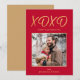 Tarjeta navideña de fotos del Día de San Valentín, dorada y roja XOXO Abrazo y besos.