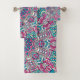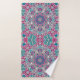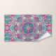 Toalla de baño de boho mandala vibrante en tonos turquesa, violeta y rosa. No olvides revisar los diseños de coordinación disponibles para la compra.