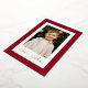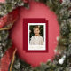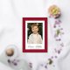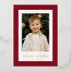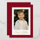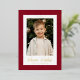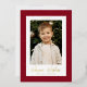 Cuta tarjeta fotográfica de vacaciones con tu foto vertical enmarcada en blanco con un fondo de arándanos y copos de nieve de Relieve metalizado dorado. Los "Deseos cálidos" se muestran en un caprichoso guión de Relieve metalizado dorado. Personalice la tarjeta de fotos de vacaciones de copos de nieve con el año y su nombre familiar. La tarjeta se invierte para mostrar el mensaje personalizado en letras blancas con un fondo sólido de arándano.
