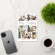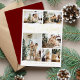 Una elegante y minimalista tarjeta de vacaciones para Navidades con seis fotos familiares personalizadas y una caligrafía de Relieve metalizado dorado con letras que dicen "Feliz Navidad".