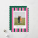 Envía alegría festiva con esta tarjeta de foto de Navidad precoz a rayas que incluye un encantador borde de vieiras y acentos brillantes rosas y verdes. Personalice el frente con su foto familiar favorita y añada su propio mensaje de vacaciones personalizado en la parte posterior. Esta elegante y moderna tarjeta de Navidades personalizada es la manera perfecta de compartir los cálidos deseos con amigos y familiares en un diseño divertido, colorido y elegante.