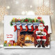 La parte delantera de esta tarjeta de saludo de los Navidades tiene una imagen de un hermoso perro de Chow Chow que encontró a Santa Claus descansando junto a la chimenea encendida después de entregar los regalos familiares. Santa tiene un último paquete. El texto de un lado dice "¿Por mí, Santa?" Todo el texto, dentro y fuera es personalizable, así que puedes cambiarlo o agregarlo, si quieres. Vea más imágenes de Chow, junto con docenas de otros productos de raza de perros, en Dog Village.