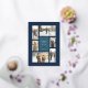 Diseño clásico de collage de fotos de vacaciones con 6 fotos personalizadas, un saludo personalizado y un año. Todas las fotos están adornadas con marcos de Relieve metalizado dorado.