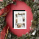 Diseño clásico de collage de fotos de vacaciones con 6 fotos personalizadas, un saludo personalizado y un año. Todas las fotos están adornadas con marcos de Relieve metalizado dorado.