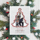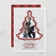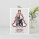 Esta foto de vacaciones es perfecta para cualquier familia que busque una tarjeta fotográfica única para enviar a sus seres queridos estas vacaciones. Este diseño presenta un marco fotográfico en forma de árbol de Navidad y un borde de manto tartán festivo rojo y negro sobre un bosque de pino blanco y fondo de nieve. Debajo del árbol hay una preciosa composición de texto con el saludo "te deseamos una Feliz Navidad con amor de" y luego tu nombre y año familiar.
