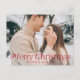 Sencilla postal navideña que incluye tu foto horizontal con la imagen de "Feliz Navidad" mostrada en elegantes letras rojas. Personalice la elegante tarjeta postal de Navidades fotográficos con su apellido y el año. La tarjeta postal se invierte para mostrar su dirección de retorno y su mensaje personal.