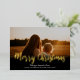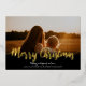 Esta elegante tarjeta de Relieve metalizado dorado Feliz Navidad ofrece un lugar para que añadas tus nombres, un mensaje en la parte delantera y trasera de una hermosa tipografía, así como espacio para que añadas tu propia foto. El reverso de la tarjeta presenta un diseño sencillo con flores de navidad rojas y más espacio para la personalización. ¡La tarjeta de vacaciones perfecta!