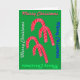 Cañones de caramelo rojo contra un fondo festivo verde con apariencia de rayas rociadas y contorno 3D y Feliz Navidad escrito alrededor de la tarjeta en diferentes colores. Mensaje especial dentro de la tarjeta, o inserte la suya propia. Obra de arte original y versión de tarjetas © 2013 TamiraZDesigns.
