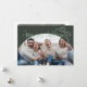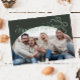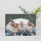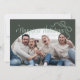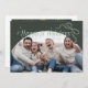 Tarjeta de plantilla de fotos de Navidades íntimos con un texto que dice "vacaciones más felices". Añade fotos de tu familia en esta tarjeta de marco de arco verde. Hay un ilustracion de arco.