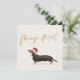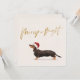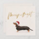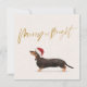 Vacaciones brillantes o tarjeta de saludo de Navidades con un perro Dachshund en un sombrero Santa Fácilmente cambia la información por su cuenta. Divertido y luminoso saludo de temporada.