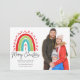 Las tarjetas de Navidades de fotos de caña de arcoiris de la navidad de Feliz Navidad presentan un divertido y colorido arco iris capilar alrededor de un bastón de caramelo y rodeados de corazones de amor rosado. Debajo está el texto Feliz Navidad en escritura moderna escrita a mano negra. Personalizado con su propio mensaje y el nombre de su familia editando el texto en el cuadro de texto proporcionado. Añade tu foto favorita. Ver otros elementos de esta colección diseñada por Evco Holidays https://www.zazzle.com/store/evcoholidays