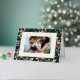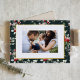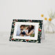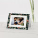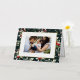 Feliz Navidad! Envíe sus cálidos saludos a la familia y amigos con esta tarjeta de foto navideña de personalizable. Tiene un patrón de acuarela en un fondo verde oscuro. Personalice esta tarjeta de Navidades de Relieve metalizado dorado añadiendo sus detalles. Esta tarjeta de Navidades botánicos está disponible en otros colores y cartón.