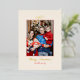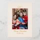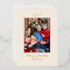 Sencilla y dulce, esta tarjeta fotográfica de vacaciones Navidad cuenta con tipografías de estilo escritura a mano y un moderno y sencillo gráfico de arco en brillante Relieve metalizado metálico para celebrar la temporada en un estilo moderno y de tendencia. La foto de orientación de tu retrato está enmarcada por una delgada línea roja sobre el saludo estacional y el texto del nombre de la familia con espacio para un mensaje más largo y profundo de alegría en la parte de atrás.