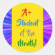 Este diseño festivo y motivador de pegatinas muestra el mensaje "¡Un estudiante del mes!". Un pegatina como este podría ser usado para motivar a un estudiante. [~Z0000317]