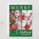Difundir alegría por las vacaciones esta temporada con esta carta de Navidades clásicamente festiva, personalizada en blanco y verde, que incluye tres de sus preciadas fotos familiares en la parte delantera. Adorada con la palabra "MERRY" en la parte superior y "Navidades" en un guión clásico en la parte inferior junto con el nombre de su familia. En la parte trasera, personalizar el mensaje para compartir un sincero y editable saludo de Navidades, perfectamente adaptado para expresar tus deseos de vacaciones únicas. Añade tus primeros nombres debajo del mensaje para añadir un toque personal, creando un recuerdo que los amigos y la familia valorarán. Esta tarjeta es la combinación perfecta de tradición y personalización, lo que hace que sea una forma inolvidable de extender la alegría de las vacaciones.