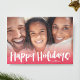 Felices fiestas con tarjeta de fotos de Navidad. Esta es una tipografía hermosa en una foto de una tarjeta completamente sangrante con un moderno degradado rosado/rojo.