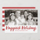 La tarjeta de fotos navideña Red Script de Festividad más feliz está diseñada para ser una tarjeta de Navidad simple y moderna, perfecta para esta temporada invernal. Esto está disponible con un sello de franqueo que coincida, así que asegúrese de consultar nuestra colección de franqueo para actualizaciones.