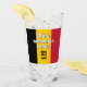 Celebre el Día Nacional de Bélgica con este atrevido y brillante cristal de pinta del 21 de julio, que presenta los tres colores de la bandera nacional belga y la "Fête nationale belge" con elegantes letras blancas. El reverso muestra un diseño idéntico. Diseño © W.H. Sim. Ver más en zazzle.com/expressionsoccasions