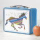 Este gráfico colorido del unicornio encantará a cualquier niño que tenga gusto de caballos y de unicornios. ¡Estas fiambreras metalizado del vintage robusto son muy populares ahora, pues eran hace año!