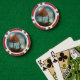 Un chip de póquer es un disco pequeño y redondo que se utiliza principalmente en juegos de azar, especialmente en juegos de póquer, para representar dinero u otro tipo de apuestas. Aquí hay una descripción detallada: Material: Los chips de póquer están generalmente hechos de plástico, compuesto de arcilla o cerámica. Los chips de mayor calidad, como los que se usan en los casinos, a menudo están hechos de un compuesto de arcilla o cerámica para un mejor peso, sensación y durabilidad. Tamaño: Los chips de póquer estándar tienen un diámetro de aproximadamente 39 mm (1,54 pulgadas) y un espesor de aproximadamente 3,5 mm. Peso: los chips de póquer profesional pesan normalmente entre 8 y 14 gramos, siendo 11,5 gramos el peso más común para los chips de calidad del casino. El peso les da una sensación sólida cuando se manipulan o apilan. Diseño: Centrar la entrada: La mayoría de los chips tienen un diseño o logotipo en el centro, a menudo impreso en un pegatina o directamente en el chip. Esto puede ser el logo, denominación o obra de arte de un casino. Puntos perimetrales: Los chips a menudo tienen un diseño alrededor del borde llamado "manchas de borde", que normalmente son colores contrastantes y están dispuestos simétricamente. Las manchas de borde son tanto decorativas como funcionales, por lo que es más fácil distinguir las patatas fritas de las otras cuando se apilan. Color: El color de un chip de póquer suele corresponder a su valor. Las convenciones de color comunes para los chips de póquer incluyen: Blanco: $1 Rojo: $5 Verde: $25 Negro: $100 Púrpura: $500 Naranja: $1,000 Esto varía entre casinos y juegos domésticos. Textura: Los chile tienen una textura ligeramente áspera para facilitar su manipulación y apilamiento. Los chips de cerámica son más suaves, mientras que los chips compuestos de arcilla tienen un acabado más mate. Sonido: Una característica distintiva de los chips de póquer es el sonido "clic" que hacen cuando se manipulan o apilan, especialmente con chips más pesados y de mayor calidad.