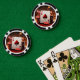 Las fichas de póquer se muestran aquí con una tarjeta y fichas fotográficas impresas. Personalizar este artículo o compra tal cual. Imagen con licencia