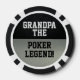 Un diseño negro y plateado para el abuelo que posee la mesa de póquer y es competitivo. Este chip de póquer incluye la cita "Abuelo La leyenda del póquer".