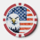 La bandera estadounidense acentuada con águila es un diseño de estilo grunge / rústico / angustiado. Añade texto fácilmente si quieres - algunas ideas: un monograma, una fecha especial, etc. El diseño está a ambos lados del chip de póquer. Buena idea para un grupo de amigos.