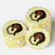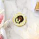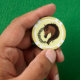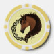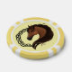 Perfil de caballo marrón con círculo de trabajo de nudo celta tribal en un fondo amarillo