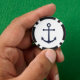 Modernos sistemas de póquer náutico Minimalista con ancla azul marino sobre fondo blanco.