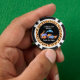 Póquer fichas para un cumpleaños u otro evento. Diseñado con un patrón de impresión de leopardo de color naranja exótico para un fondo. En la parte superior hay un marco circular negro con un borde blanco. Ilustrado con una imagen acuarela digital de un rebaño de animales salvajes corriendo juntos. Los animales incluyen un delfín que salta, una jirafa, elefante, canguro, rinoceronte y gato salvaje.