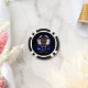 Una imagen fractal azul y púrpura que se asemeja al casco y los hombros de un astronauta sobre un fondo estrellado. Personaliza añadiendo el valor de la ficha u otro texto en el reverso.