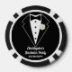 Patatas de póquer divertidas con un esmoquin de corbata negra y coraje de flores de rosa blanca para personalizar con el nombre del novio un juego de póquer de soltero. Las cartas de juego personalizadas también hacen un regalo divertido como boda.