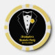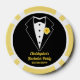 Patatas fritas de póquer divertidas con un esmoquin de corbata negra y coraje de flores de rosa amarilla para personalizar con el nombre del novio un juego de póquer de soltero. Las cartas de juego personalizadas también hacen un regalo divertido como boda.