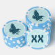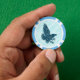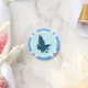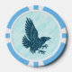 Una simple silueta azul de un cuervo vivo (Corvus corax) de estilo nórdico-celta, superpuesta a una imagen de fondo nevada. Personalizar añadiendo el valor, e chip u otro texto en el reverso.