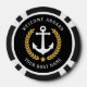 Póquer con temática náutica con "Welcome Aboard" y tu nombre de barco u otro texto deseado en tipografía elegante. Este personalizado está diseñado con un ancla de barco con hojas de laurel de color oro y una estrella. El diseño está sobre un fondo negro y regal, con varios colores de chip a elegir.