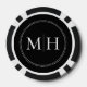 Fichas de Poker Negras Minimalistas Elegantes con Monograma Personalizado. El borde punteado recuerda al milgrain, que es una técnica de detalle de joyería que se utiliza a menudo para anillos de compromiso y bodas.